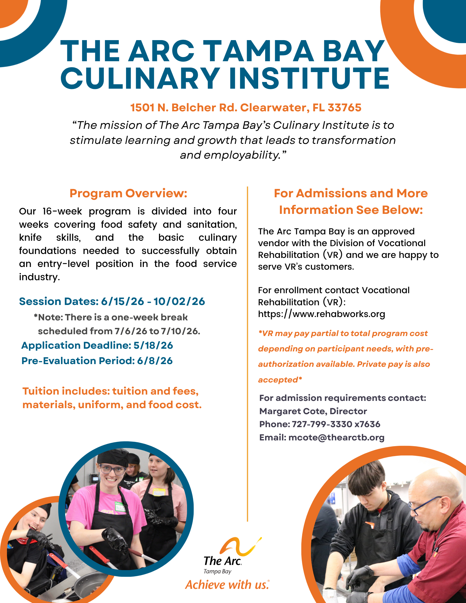 "The mission of The Arc Tampa Bay’s Culinary Institute is to stimulate learning and growth that leads to transformation and employability."